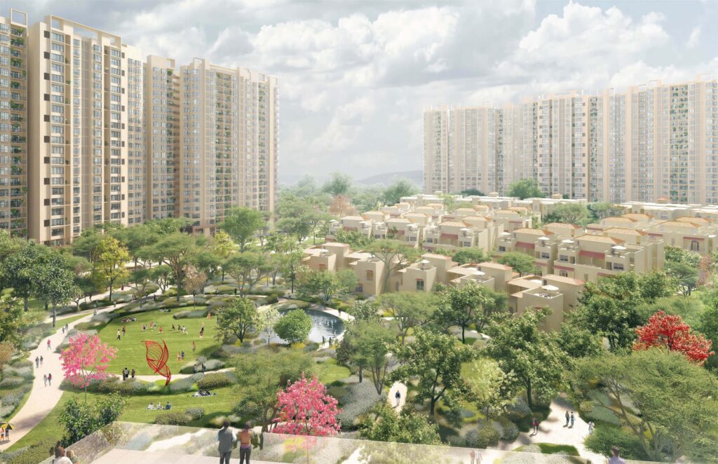 This project is not just about tall towers; it is about community living. Within the township, you’ll find landscaped gardens, green spaces, open-air amphitheatres, sports courts, swimming pools, retail spaces, senior citizen zones, and even a dedicated school. At the heart of it all lies a 60,000 sq.ft clubhouse, where recreation, wellness, and togetherness come alive. Every corner of this township has been designed for people to connect, unwind, and celebrate life.